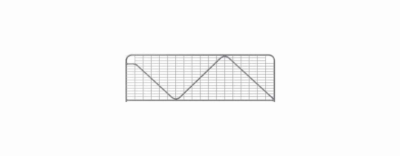 Place the gate onto the Gudgeon – with the mesh side of the gate being on the side where you have more stock pressure. - Hammer in your Top Strap thread, ensuring that the hook of the hinge goes around the top of the gate.